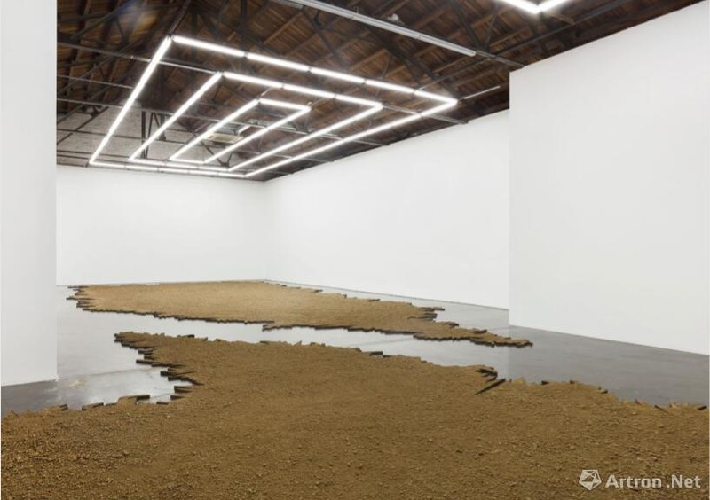 2018年 8月 29日至10月20日,“坏土”杨 心广个展在北京公社展出,此次展览是艺术家杨心光在北京公社的第三回展。杨心广擅长使用草、木、土、石等自然物料作为媒介来进行创作, 认为自然材料的天然性更接近物质的原本状态,而在他 的创作中这种原本的物质状态被有意地消解,从而强化 在这基础之上的人文属性。本次的展览标题“坏土”中的“坏”字,意寓了艺术家 想将土壤这个材料从客观的自然状态中提取出来并赋予 其人文的价值判断,使其进入以人为主导的道德体系中, 以形成人格化的自然物与人的对立关系。主展厅中土壤 占据了大部分的面积,与人可以穿行和活动的空间分庭 抗礼,两者之间被艺术家以极其繁琐的分界线区隔开来。 展厅里两片土壤的边界由钢条折弯、截段、焊接制作而 成,有的呈圆滑的曲线,有的则呈硬直的锐角,像是经 历了无数次的谈判磋商而划分的各自的疆域,细节处蕴 含着纷争与冲突。转入小展厅,迎面将观众行进之路截 断的是一件不锈钢装置,诸多弯曲的小泥点被艺术家泼洒在光滑的不锈钢板之上,泥土的粗糙强制性地破坏了 工业之物那超乎真实的光洁感。对于杨心广而言,土壤 是朴实无华之物,是真实世界的基础。在人类已习以为 常地畅游于虚拟世界的当下,土壤仍将这漫游于无边之 境的想象力的主体限制于现实的原初之地。