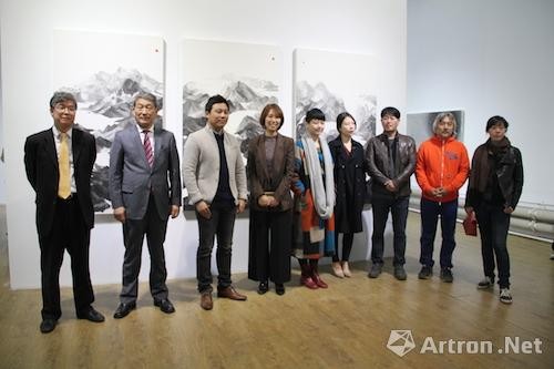 开幕式现场,左起:韩国文化院院长,韩国光州市立美术馆馆长赵真湖,参展艺术家郑成俊、雪朴、罗苇、尹俊荣、黄晶厚、黄旭、高平