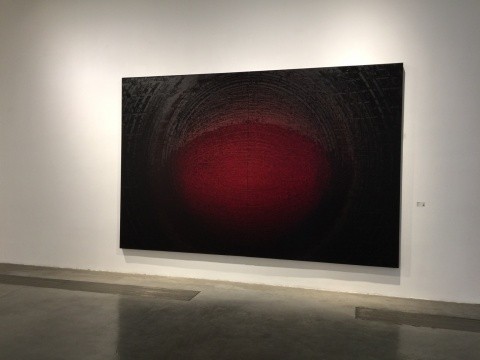 艺术家杨黎明以其标志性的“书写性曲线”,在早年的书法基本功与来自音乐韵律的节奏感中,创造出独树一帜的抽象风格。本次展览展出的艺术家创作于2016年的全新作品,是艺术家精选的“更为成熟”的作品,以毛笔与油彩颜料的配合,层层叠叠的堆染,让现场开阔的展厅内,那些尺幅巨大的作品于安静中散发着肃穆的气氛。