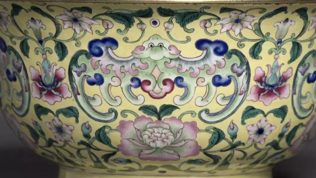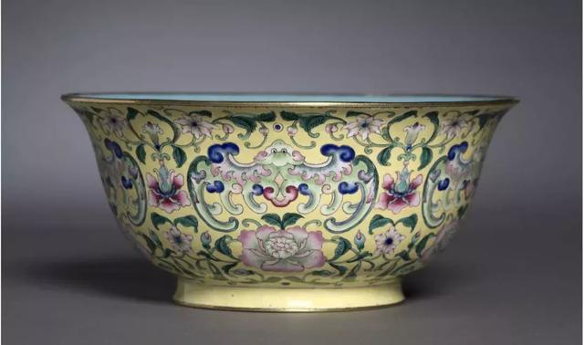 乾隆黄地粉彩万寿无疆纹碗