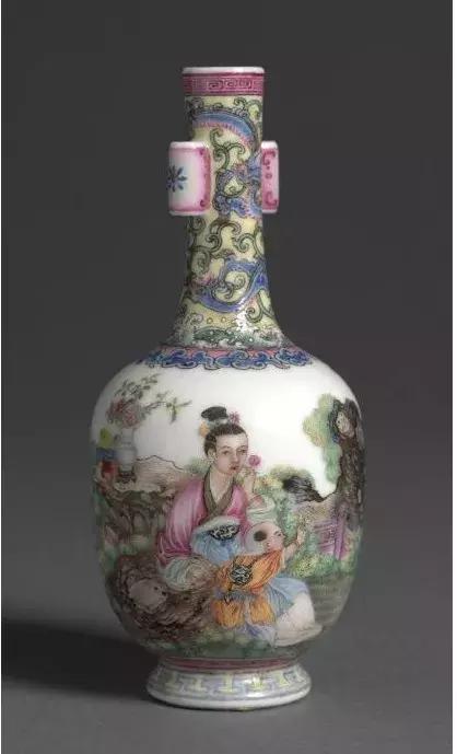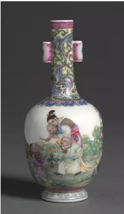 乾隆古月轩婴戏纹长颈贯耳瓶