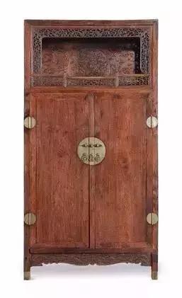 亮格柜在亮格上的迎面栏杆中间开敞,仿佛是一座小舞台,美观而便于陈列,十分稀有。从亮格柜的构造和雕饰来看,它是明代后期传统家具发展到十分成熟时期的制品。