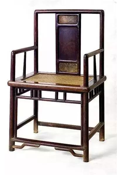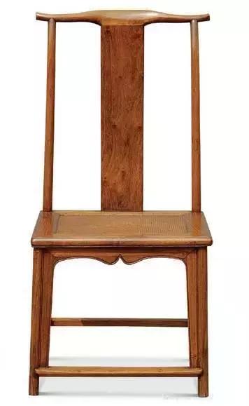 此椅搭脑中部削出斜坡,以便颈项倚靠。两端微微翘起,并略向后兜转,制作圆浑,给人舒适之感。靠背板独木无雕饰,向后弯曲,圆婉合度,至底部始有垂直之意。