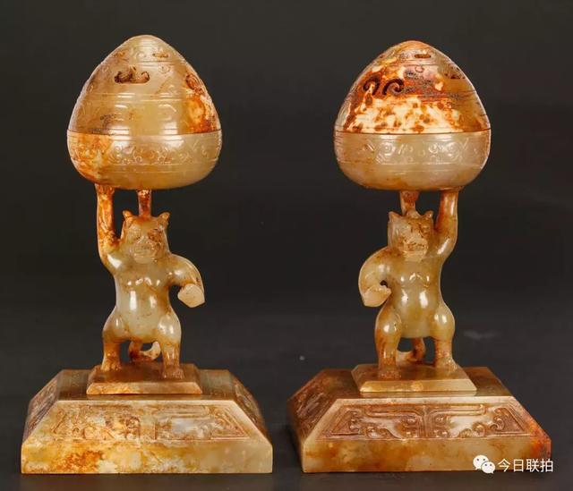 汉 玉人香炉一对