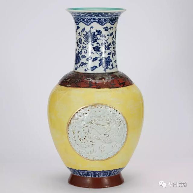 清 青花黄底瓶