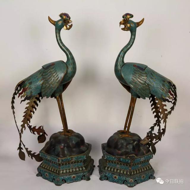 清 掐丝珐琅凤凰一对