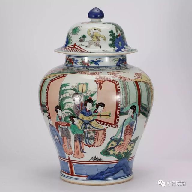 清 五彩人物将军罐