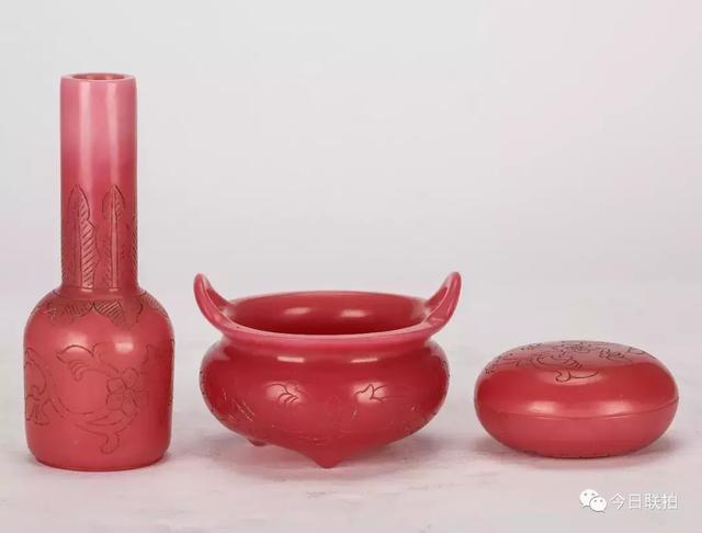 清 粉料器花卉炉、瓶、盒