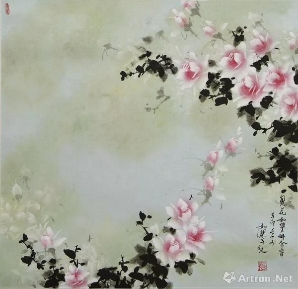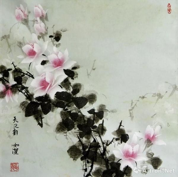 在创作中,把中国绘画传统技法与西画技法相结合,运用“湿画法”,将彩、墨、虚、实、远、近关系融入作品,使作品呈现出滋润鲜活、清新、素雅、和谐的自然效果,使享誉世界“花中皇后”之美誉的月季花,气质更加凝重,典雅、温馨而充满生机,《月季》作品多次被外交部门作为礼品赠予多国大使馆。