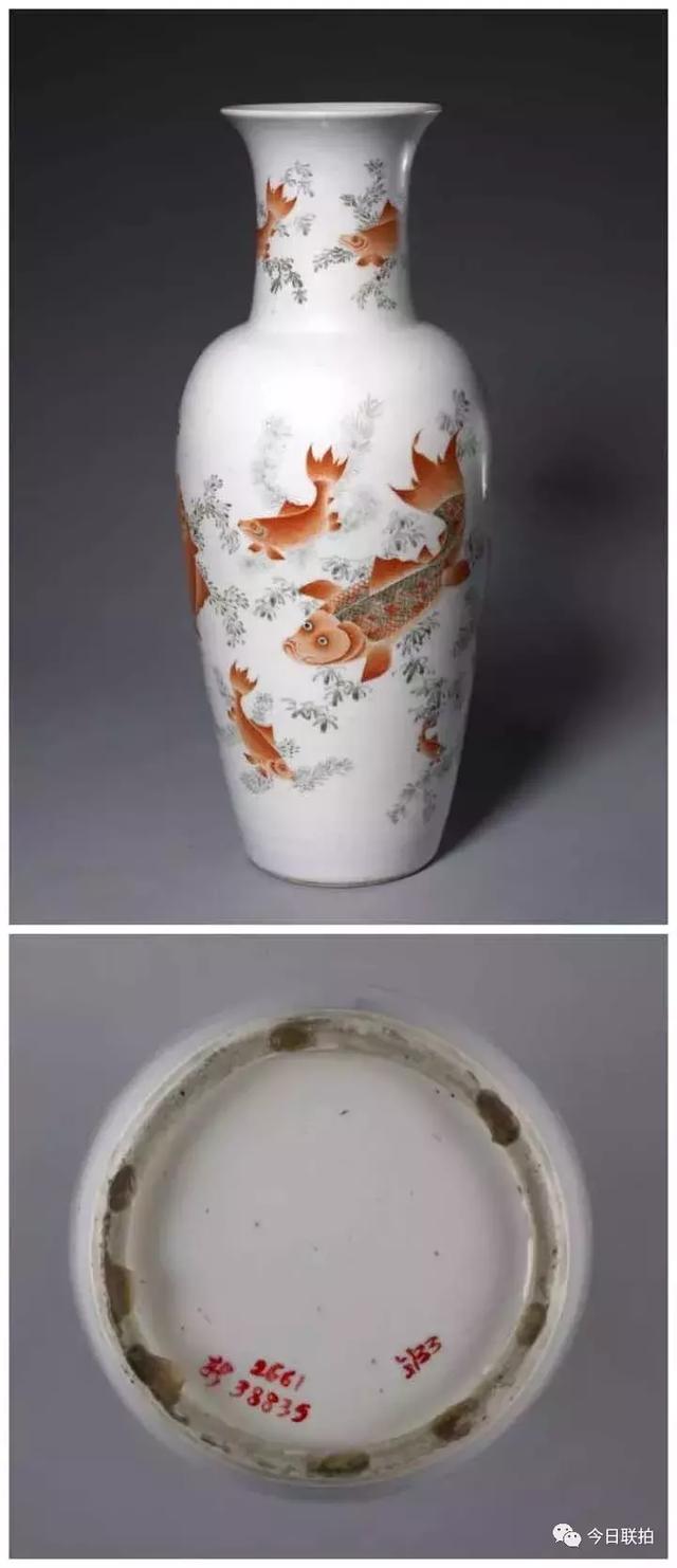 矾红彩鱼藻纹瓶