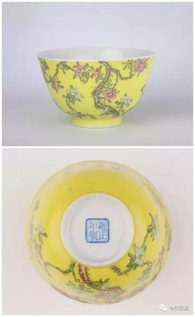 黄地珐琅彩桃花纹杯