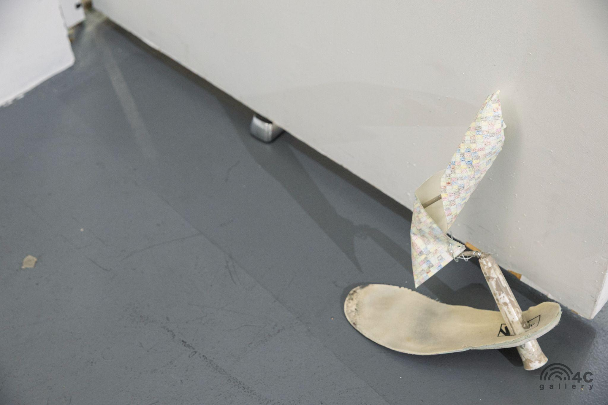 二号展厅中呈现了艺术家高珊、玛雅 克莱默、沈也、翁纪军的作品。高珊以植毛的方式制作文字和文本,毛发交错的干扰为阅读设置了层层障碍,而文本的格式和外轮廓的特征以及隐约闪现的文字和符号挑逗着观者近乎偏执的解读欲。作品源于人在长时间凝视文字或文本时产生的莫名的陌生感以及由此引发的焦虑,对词义的反复确认会使其变得闪烁而难以捉摸,只剩下浮动的抽象轮廓和形态。玛雅·克莱默是位美国艺术家,她喜欢使用生活中常见却被人忽视的东西,比如废金属、树枝、碳作为创作材料,常常从自然界寻找轻盈、细小的物,比如树叶、羽毛、断肢,作为创作的出发点,以模拟、伪装的方式创造物,又以这些人造物作为载体,表现物与物之间肉眼不可觉察的存在——空缺、空间、运动。