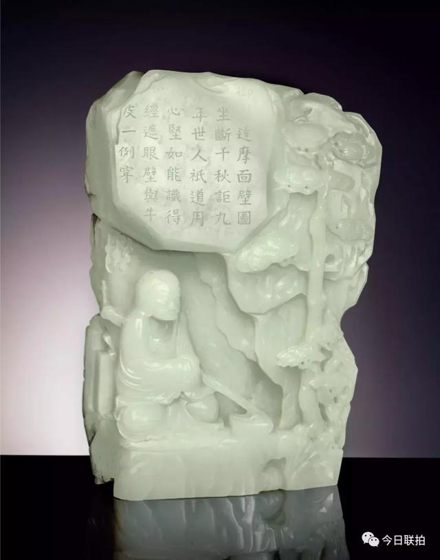 清十八/十九世纪 青白玉雕达摩面壁图山子
