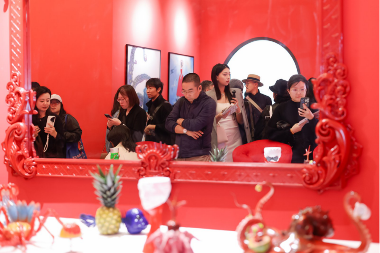 博览会第一天,玛丽娜充满奇思妙想的数字艺术创作就吸引了许多观众,成为很多艺术文化媒体和博主的打卡地。现场人头攒动,艺术爱好者们纷纷拿起手机,或借用展位上的VR设备,与玛丽娜的作品来一场“近距离接触”。不少收藏家、艺术机构和艺术专业人士,也到场进行了互动体验。