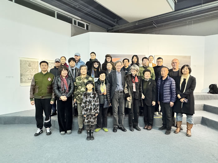 中国美术家协会副主席李翔在开幕式上发表了激情洋溢的致辞:“首先,我为两位艺术家的友谊而感动——二人二十年如一日,共同写生、创作、交流、办展,这样的跨国友谊令人敬佩。从个人缩影展望国际关系——国与国之间谈军事、历史、经济难以避免一些冲突,但艺术是和平的催化剂,国家之间应该大量发挥艺术交流和文化互鉴的作用,共同和谐发展。其次,我感动于他们的艺术创作。霍华德惯用拓印的方式进行创作,而这不禁让人联想到中国书法艺术的传播,所以他的创作文脉始终与中国文化有着天然的亲切感和契合之处。邢俊勤是创新的排头兵,他不仅在全军美展中屡次获得大奖,更时刻关注时代脉搏,将个人思考注入艺术创作,深刻了作品的内在价值。最后,我感动于霍华德和邢俊勤执着的艺术精神。虽身处两国,但他们无惧空间的挑战,排除万难持续举办联展,在这一过程中彼此鞭策、不断并肩同行,保持着跨国的友谊和学术的共进,怎能不让人感动!”