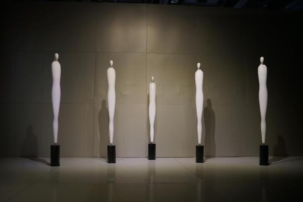 在《红太阳》的另一边,意大利艺术家奥立仁(Oliviero Rainaldi)的作品似乎不那么显眼,线性的人物雕塑孤独地向上生长着,似乎在低声诉说些什么。奥立仁的个人背景颇有意思,他在罗马上过三年神学课程,曾经差点成为一名神父,后来,他为教堂制作礼仪用品,与此同时,他的雕塑作品在世界各地的博物馆展出。展览发布会结束后,奥立仁一边抽着自己刚卷的烟,一边回答了“澎湃新闻”(www.thepaper.cn)记者的问题。被问到为教堂制作用品与在博物馆展出作品有什么不同,奥立仁表示,教堂有自己的礼仪和规则,你必须依照它们来行事,而在博物馆里则自由得多。至于艺术和宗教对他而言具有怎样的关系,这位差点成为神父的艺术家似乎有些“答非所问”,“在我创作之前,我会设置一个框架,如果最终的作品达到了我的设想,体现了我的灵感,我就会觉得那是好作品。”