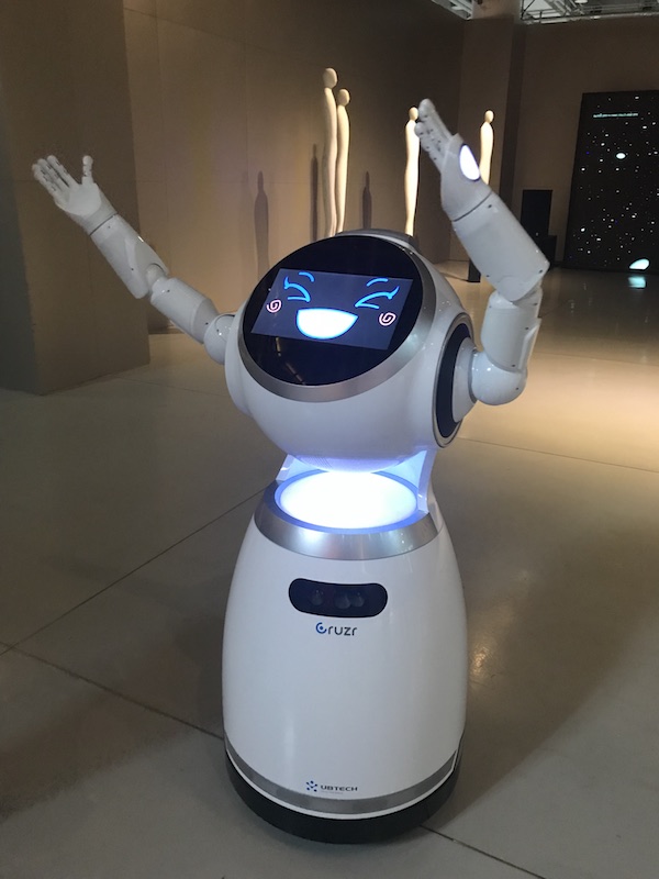 如今,这个“未知的新世界”已经“侵入”了我们的生活,比如人工智能,这也是展览除了“宗教体验”之外的一大重要主题。在“众妙之门”的展览现场,记者看到了“孜孜不倦”学习书法的机器人,以及分布在展厅各处的人工智能导览员,无论你是否喜欢和接受,它们都以难以忽视的“存在感”成为你观展体验的一部分。