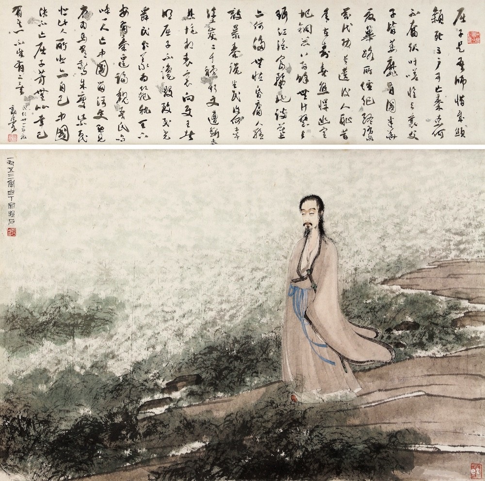 傅先生属于艺术家中的学术家。我们姑且把金刚坡时期作品从他个人艺术史中释放出来,更能看到以傅抱石为代表的二十世纪中国知识分子精神的集中洗礼和淬炼,更能真正体会到傅氏“嗜史-好饮”的大金刚坡品质。