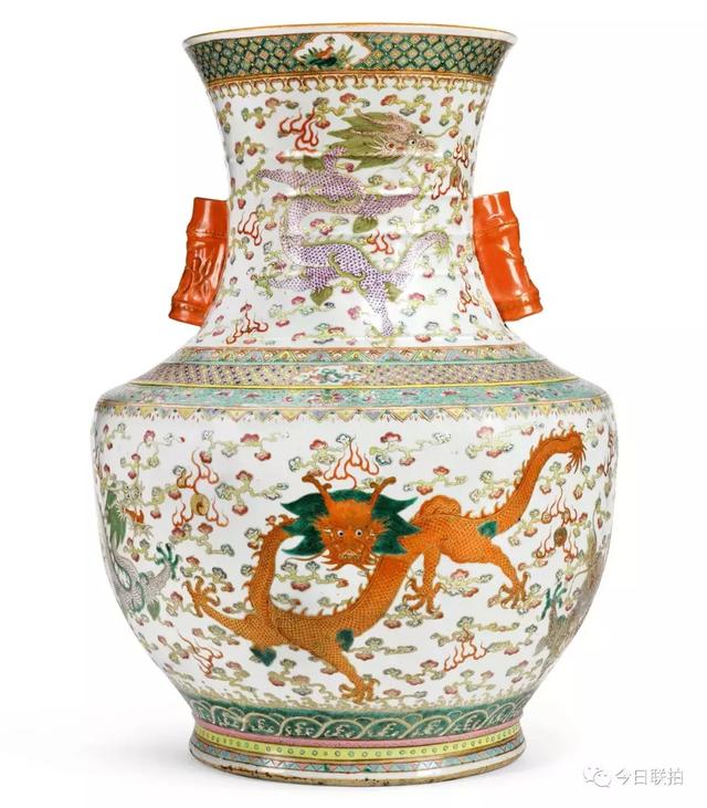 清十九世纪 粉彩云龙赶珠纹贯耳壶