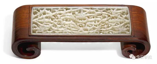 明末 青白玉镂雕穿莲游龙纹珮墨床