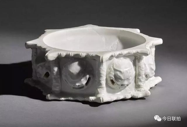 十/十一世纪 邢窑白釉竹节狮首八棱臼