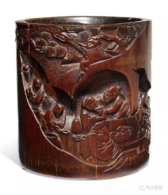 清十八/十九世纪 竹雕仙人祝寿图山子