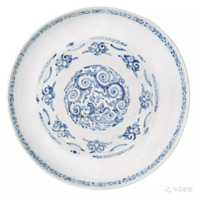 明嘉靖 外销青花团龙纹耶稣会徽章大盘