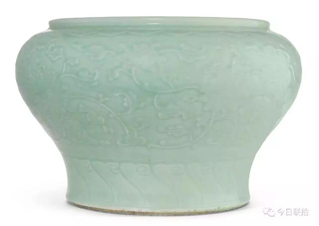 清十八世纪 青釉浮雕缠枝莲纹罐