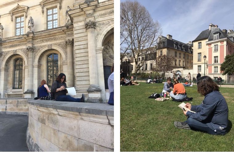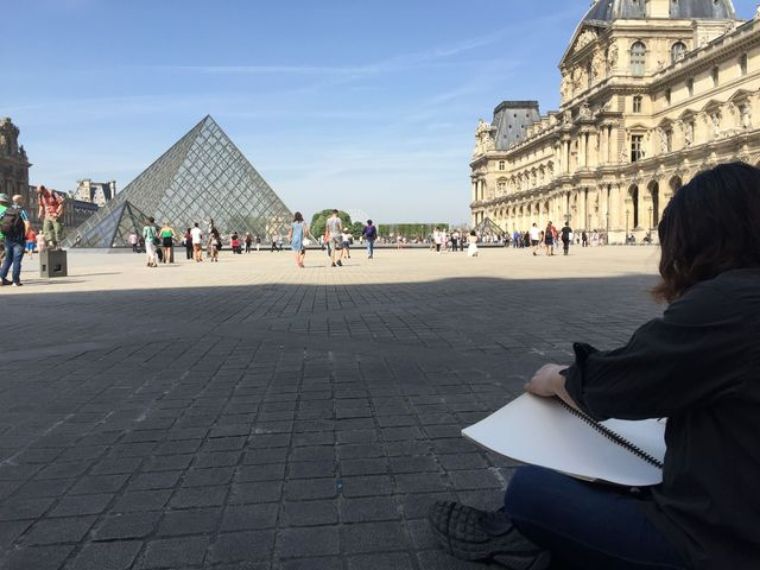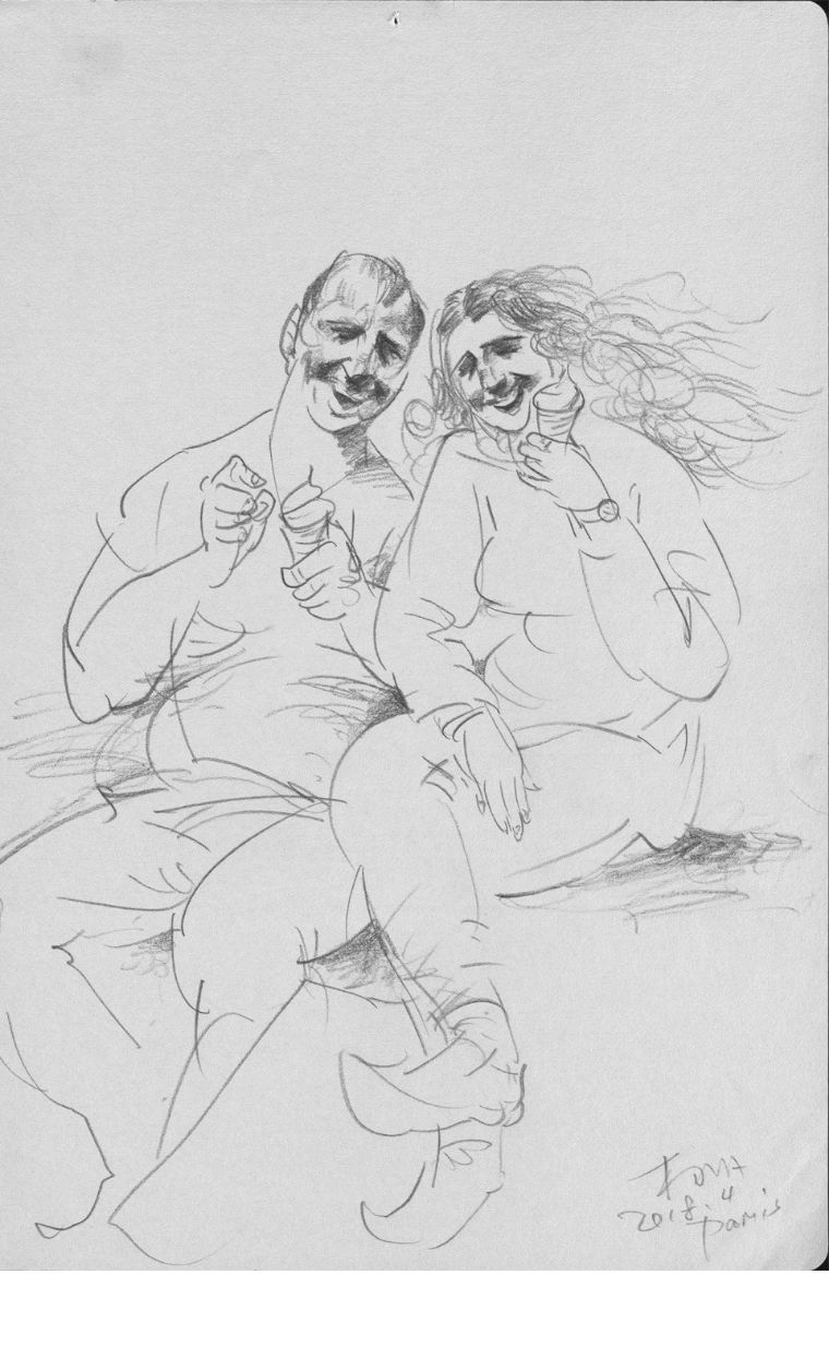 我这次在巴黎艺术城居住了一个月的时间,给自己制定了以生活速写为成果的游学方向,买好地铁卡,准备好行囊,每天早出晚归,行走大街小巷,花上许多时间挤到城市各角落的人群中去感受这座城市中的人文气息、寻觅阳光下平凡生活瞬间的感动和片刻的精彩、品味、捕捉和描绘蓝眼睛、黑眼睛、金头发、黑皮肤的人群中忙碌或休闲、欢快或愁绪人们的生存状态。