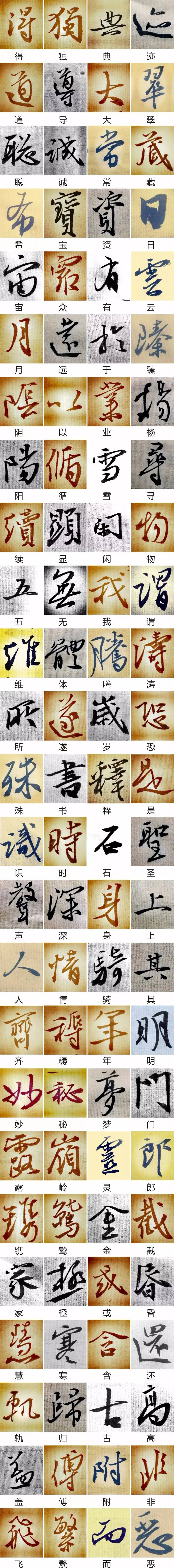 行书单字锤练之后,逐步涉猎篆、隶、草书等,技进乎道、后乃通会,通会之际,人书俱老。一幅优秀的作品,必须兼备或达到枯、湿、浓、淡;重若崩云,轻如蝉翼;仠仠乎似出月之出天涯,落落乎犹众星之列河汉。若此,整幅作品的分行布白,穿插避让,到位与味道才会显现。进而达到点、线、面的有机统一。