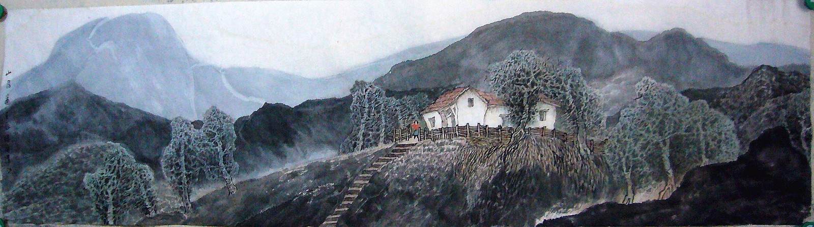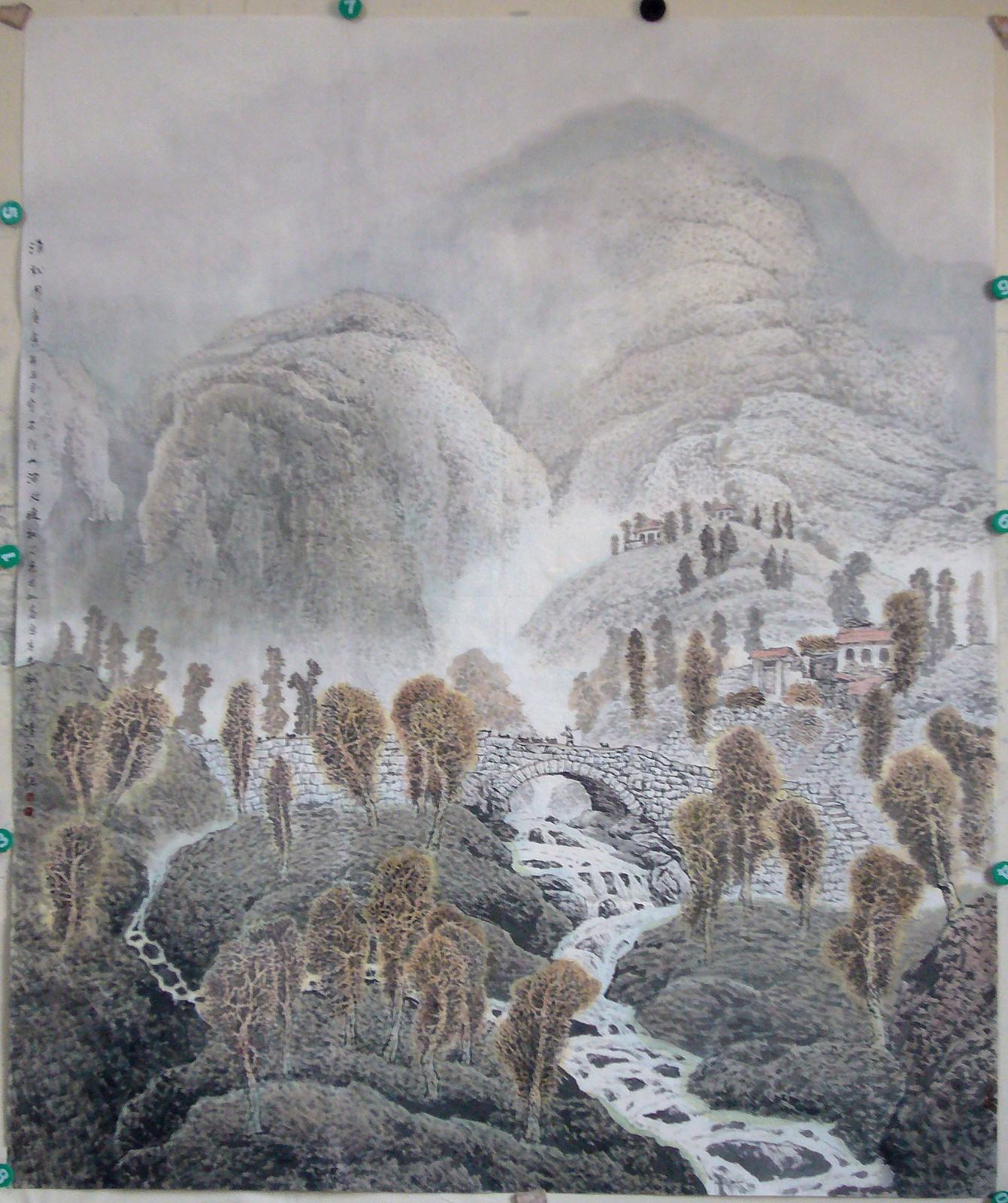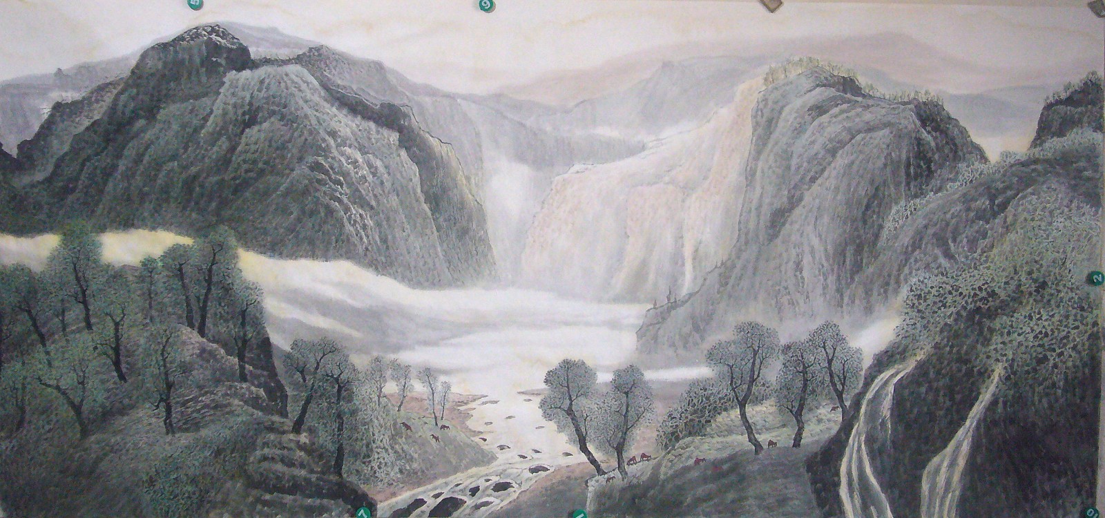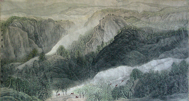 李先生‘不惑之年’在中央美院举办个展,一晃二十几年过去了,真是人生苦短呀。但可喜的是:他体魄健壮,精力充沛,每年还要坚持外出写生采风的良好习惯。并且每次归来之后都会有一批作品问世,表现出极强的创作欲,李先生正迎来一生中最辉煌的艺术高峰期。有人说中国画是老年人的艺术,就像庄稼一样,生长期长的作物就一定比生长期短的作物优质很多。这句话在一定意义上是有道理的。就好比齐白石、黄宾虹等大师其艺术巅峰均是在后几十年完成的。 李清江先生早期绘画深受乡贤吴玉书老先生点拔,遍游名山大川画山水;自一九八零年开始跟随贾友福先生深入到太行深山区实施更高层面上的艺术修炼。在画法上李清江尊重传统又不拘于传统,他的山水画师宗北派,旁及南派,并广采博取,兼收各类画种之精华,既有宋画的严谨精湛,又有元画的轻快悠然,具备水彩画之秀润的同时又兼具版画的纯净与明快的装饰美感。为了努力变革求新,他深入现实生活,畅游名山大川,开阔艺术视野,以自然造化为师,突破了传统的定式,形成了独具个性的绘画风格。