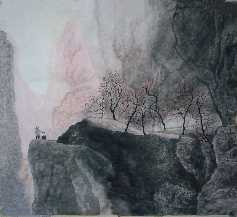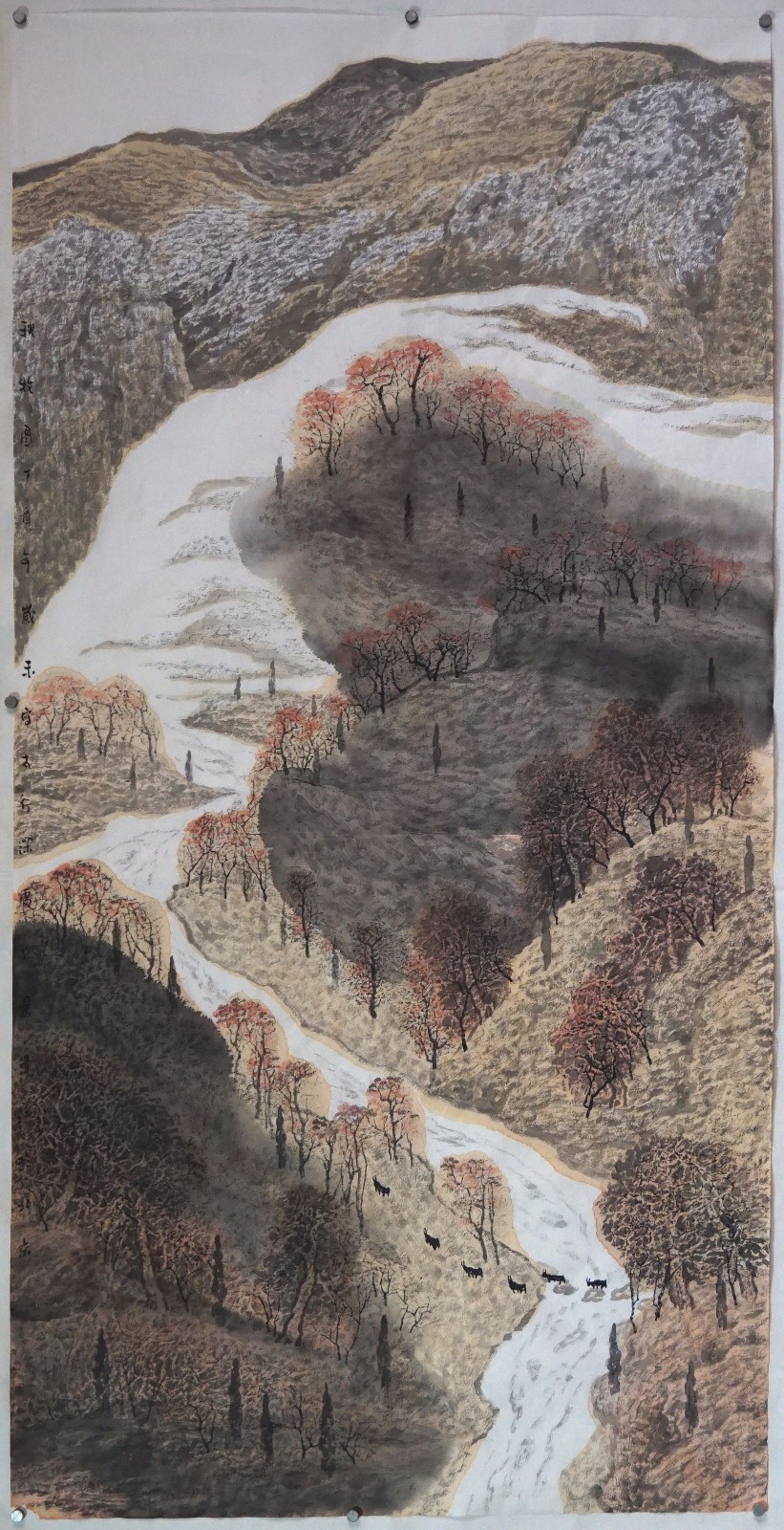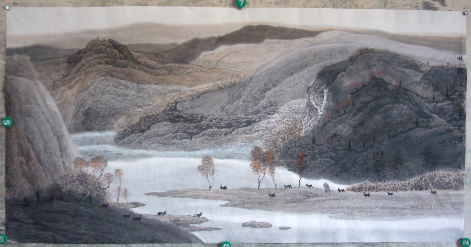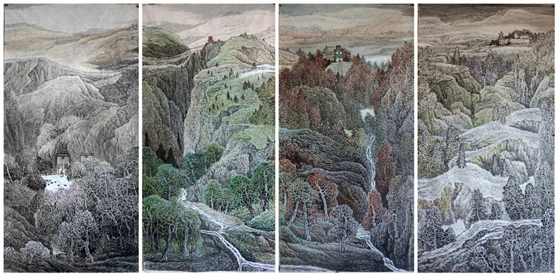 李先生‘不惑之年’在中央美院举办个展,一晃二十几年过去了,真是人生苦短呀。但可喜的是:他体魄健壮,精力充沛,每年还要坚持外出写生采风的良好习惯。并且每次归来之后都会有一批作品问世,表现出极强的创作欲,李先生正迎来一生中最辉煌的艺术高峰期。有人说中国画是老年人的艺术,就像庄稼一样,生长期长的作物就一定比生长期短的作物优质很多。这句话在一定意义上是有道理的。就好比齐白石、黄宾虹等大师其艺术巅峰均是在后几十年完成的。 李清江先生早期绘画深受乡贤吴玉书老先生点拔,遍游名山大川画山水;自一九八零年开始跟随贾友福先生深入到太行深山区实施更高层面上的艺术修炼。在画法上李清江尊重传统又不拘于传统,他的山水画师宗北派,旁及南派,并广采博取,兼收各类画种之精华,既有宋画的严谨精湛,又有元画的轻快悠然,具备水彩画之秀润的同时又兼具版画的纯净与明快的装饰美感。为了努力变革求新,他深入现实生活,畅游名山大川,开阔艺术视野,以自然造化为师,突破了传统的定式,形成了独具个性的绘画风格。