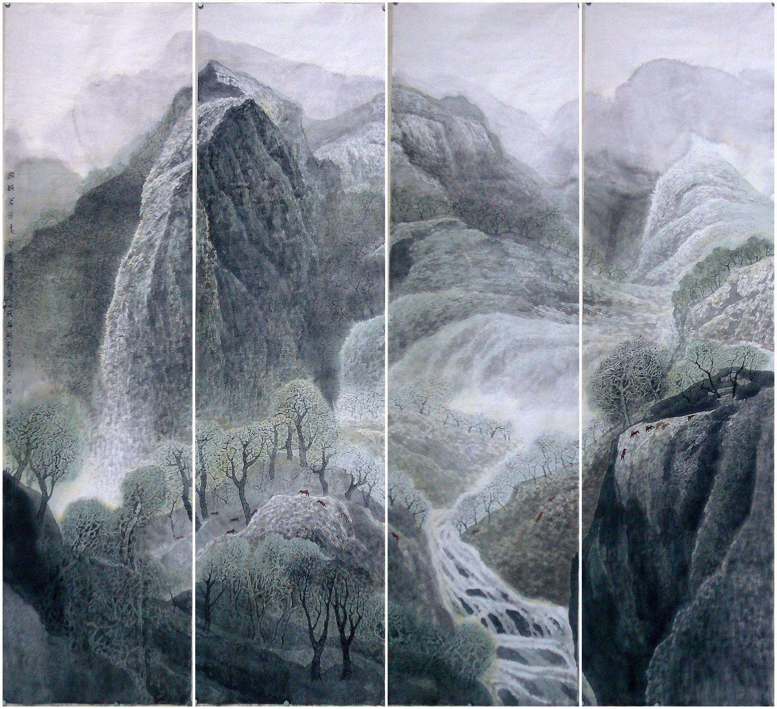 黄宾虹大师云:‘山水画乃写自然之性亦写吾人之心。。。’这句话道出了一个山水画家必须恪守和实践的至高法则,也是画家需要拿出毕生的时间去修炼的艺术之路。画家应该做到在整个艺术升华过程中通过‘内修外炼’去达到把由‘自然之象’蝶化为‘心象’的境界体现在自己的作品里。一个优秀的画家在他的作品中一笔一划都是伴随着心性在流出的,作品之象就是心象的体现。这是一条需要长时间修炼的漫长艺术之路,没有一定的超人的付出和非凡的毅力是走不下去的。苦他人所不能苦,炼他人所不能练,李清江先生几十年如一日刻苦研习,勤奋实践,默默地耕耘在这条艺术之路上,并且已取得了令人瞩目的成就。