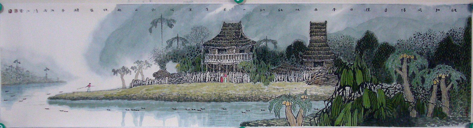 李清江先生的版纳山水,表达的是画家自己独特的美感体会,同时抓住了这一特定自然景观的风韵。远远望去,那秀逸劲拔的青山、清澈明丽的湖水,一种高洁舒爽之气扑面而来。画面在布局上巧妙地注入了一种感人的空间意象,将感情自然融化于山水画之中,从而创造出一种前无古人的独特画境。加之那潇洒利落的笔法和浓而不浊的墨色自然地烘托出这青山碧水的明洁意境。李清江先生的江南水乡系列作品中,那水田、角楼、码头、密密的竹林、古榕等,构成了永恒,悠悠然地荡涤着读者的心灵。
