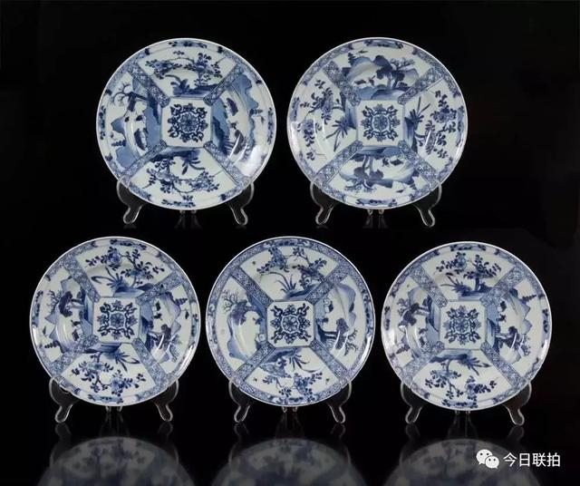 青花花卉纹盘一组