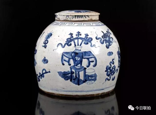 青花博古纹罐