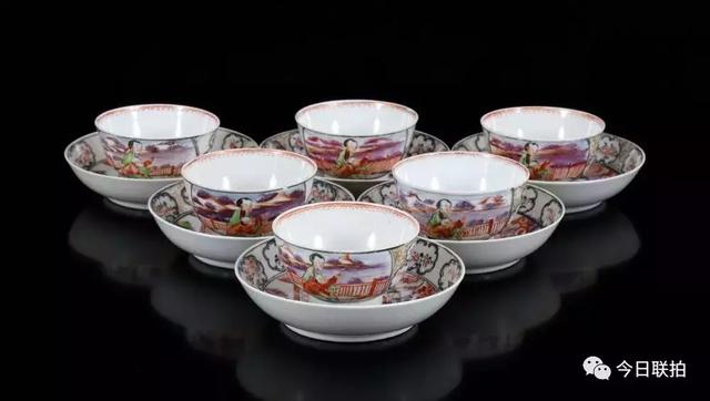 广彩杯碟一组