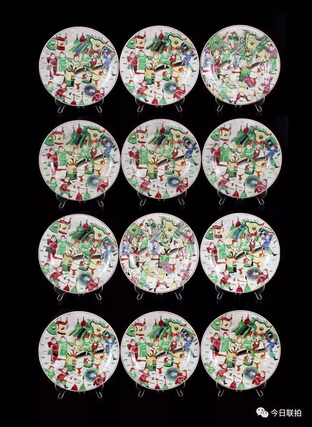 五彩刀马人物纹盘一组