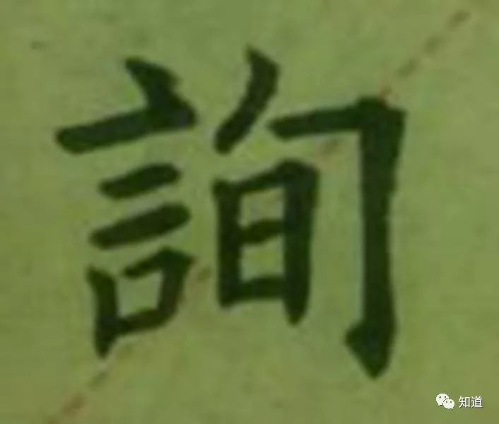询字:询还是略低,右竖要有轻度内折!日要往字的中部靠!