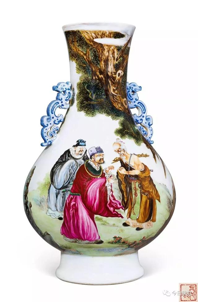 是次拍卖推出月圆雅聚--珠山八友近代文人瓷单个专场,将呈献四十件民国时期的名家瓷艺珍品,当中包括 “青花大王” 王步已知最大型粉彩作品 " 将相和龙耳瓶 ",该瓶造型雄伟,气势逼人,画工精细,人物刻划细致入微,而且状况良好,实在难能可贵。