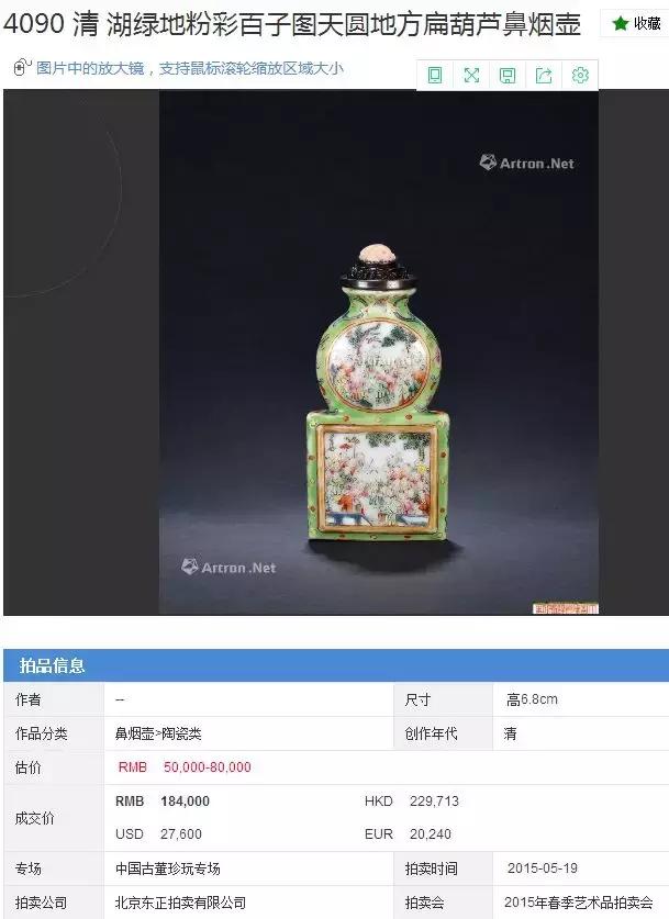 俗话说“勤能补拙,笨鸟先飞”,这是一件个人从事艺术品行业捡过的第一件漏,当然是印象深刻了哈,这件是大清早在英国地摊上花了30英镑,折合人民币300元买到的一件乾隆官窑鼻烟壶,what ? 300人民币? 是的哈哈,就是这价从一位中年英国妇女手上买过来的,当然前提是要比别人进市场早,看东西比别人准,下手掏钱比别人快,这就是英国跑摊的真实现状,后来转手给一位业内同行,最后在北京东正拍卖公司以18.5万的价格成交,溢价600倍!