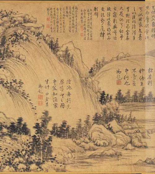 赵孟頫提出“书画本来同”的口号,以书法入画,使绘画的文人气质更为浓烈,韵味变化增强。《人骑图》上有作者多次题字,显现出了独有的文人气质。