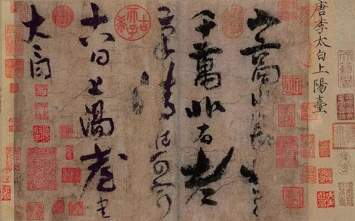 这是李白唯一传世的书法作品,皇上当然不能错过,群章盖个够,就是不能让画面“太白”了。如果李白泉下有知,肯定要把乾隆骂成狗,再让他给自己倒酒脱鞋。