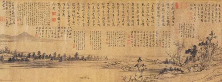 乾隆是多么喜欢《富春山居图》,从满屏的题字就看得出来。挺长一幅画卷空白处都被他写满了,创下了“中国历史上同一人在同一画中题跋最多”的记录。古代文人画讲究的“留白”在乾隆眼里根本不存在。
