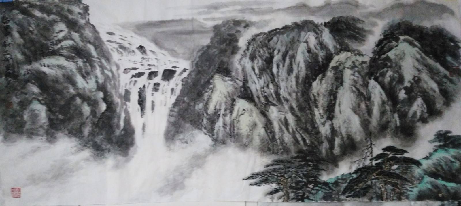 (2)国画作品《山水清音》获2017年"东方美"全国诗联书画大赛金奖