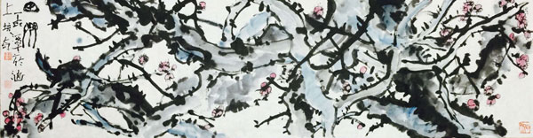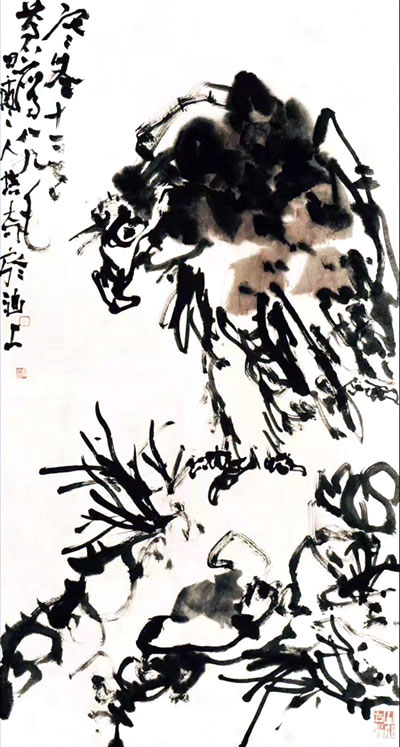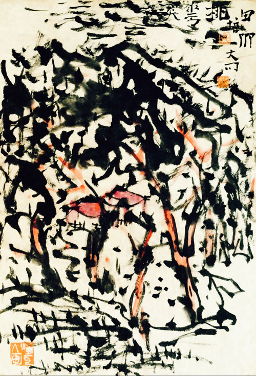 大凡写字入甜易,入苦难,入滑易,入涩难,入熟易,入生难,入秀易,入拙难。但一味苦涩生拙,则虽奇亦俗,故须朴,以天真浪漫,高古天成。 余氏碑帖双修,妙者不拒,而所师名家中,以徐生翁与傅青主为主,此则大奇矣。徐生翁者,书中贾岛,画里寒山也;而傅青主,则书中柳永,兼徐青藤也。徐生翁一生郁郁,困苦不堪,但其书法,倘以璞讷厚拙生涩论,能出其右者不多,故能体其妙者亦寡,而余氏独钟徐公,其眼界,则已高常人一筹;然后又补以千转婉转,百种曲折,如长藤钩树之傅山,则可冲去徐氏之无人间烟火气之不足矣。 次说画,余氏师法众多,中以陆俨少、黄宾虹二公为主,此又一奇也。陆氏秘法,笔多作锯齿之状,图则自一角生起,渐成全图;而宾翁则与之两反,一则线条轻松圆转,二则圆线大抵从全图大略,略略勾数笔,再多次积线,线上聚点,八墨并用,水墨三色兼施。余氏今日之山水,可以百变。然究其师承,则徐、黄之师,南辕北辙不相悖,化为黄帝指南车;车转人不转,桥流水不流,流中中存自在心,故可山水,颇可一叹也。