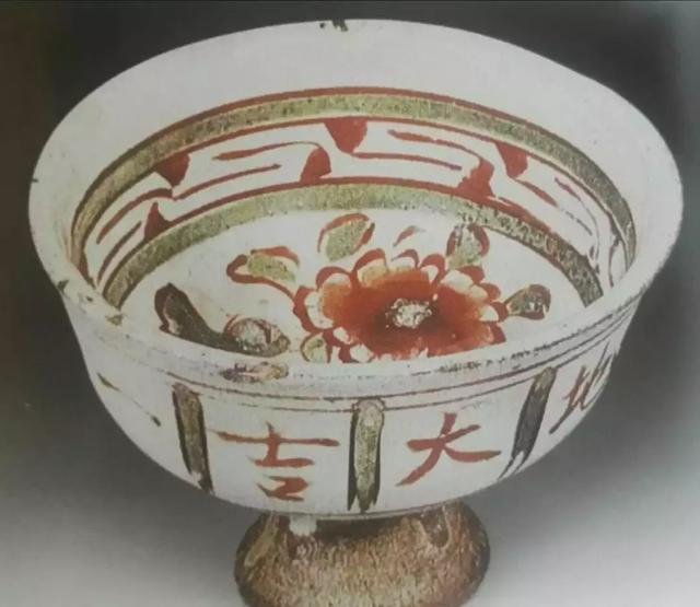 1978年,河南鹤壁等城区工地发现一处遗址,发掘出了一只书写大宝九年的铭文碗,同时还出土了一些红绿彩碗。另外,《金史.食货志》里有关于红绿彩中最重要的着色颜料矾的记载:“金制,榷货之目有十,曰、酒、曲、荣、醋、香、矾、丹、锡、铁,而盐为首……章宗承安四年……五月,以山东人户造卖私茶、侵侔、榷货,遂定比煎私矾例,罪徒二年。”