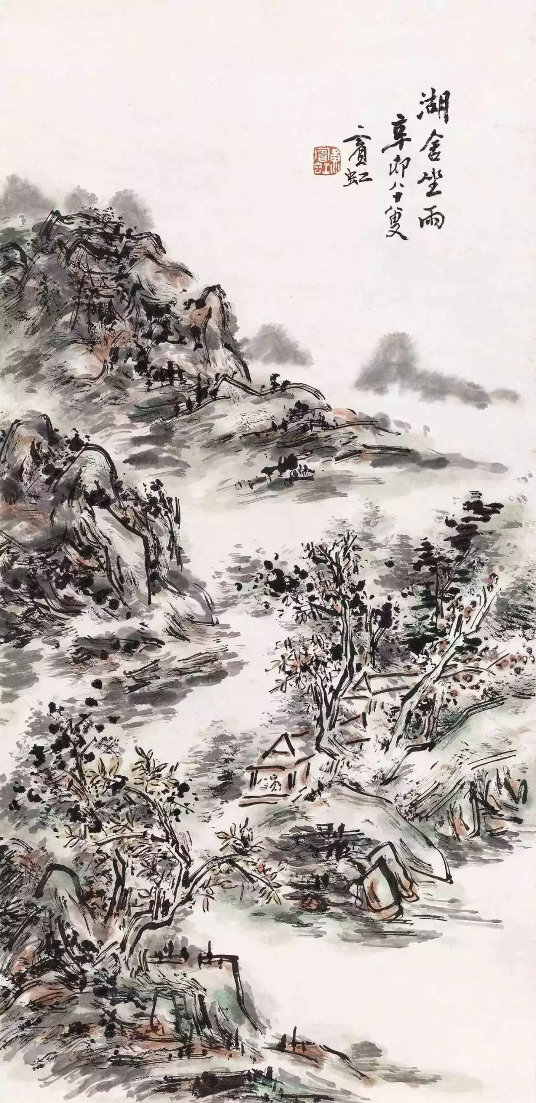 黄宾虹(1865-1955 ),原籍安徽歙县,生于浙江金华,成长于老家歙县潭渡村,初名懋质,字朴存,号宾虹,别署予向。他一生到过许多地方,除了一直让他魂牵梦绕的老家歙县潭渡以外,还在上海、北京、重庆等多个地方生活过,黄宾虹喜游历,写生、讲学所到之处更是不能胜数,这样的经历开拓了黄宾虹的眼界和胸襟。他曾加入柳亚子等人创办的“南社”,以文艺鼓吹革命,具有政治热情。在大道不显得年代里,他回到故里整顿族产,造福一方。同时他又是一个有事业心的人,充满毅力与热情,在当时的艺术、社会活动中经常可以见到黄宾虹谋划组织的身影。在沪期间,黄宾虹出任神州国光社编辑,主笔《国粹学报》《神州日报》,撰写了大量的论艺文章。他还参与编纂了《美术丛书》,尽收古代书画理论,嘉惠艺林,若没有精深的学养断不可能完成这项工作。在黄宾虹留下的著作中,画史、画论为数颇多,对绘画发展、各家得失、艺术追求等问题的精论比比皆是。同时黄宾虹又是一位诗人,所写的诗词文赋状物抒情,饱含诗意文心。在黄宾虹写给师友的信中,他多次谈到自己收藏的书画印章,对古玺印的收集、考订、研读多有心得。后来黄宾虹入京审定书画,得以遍览故宫所藏的历代名人真迹,为其绘画的入古求脱之路奠定了基础。