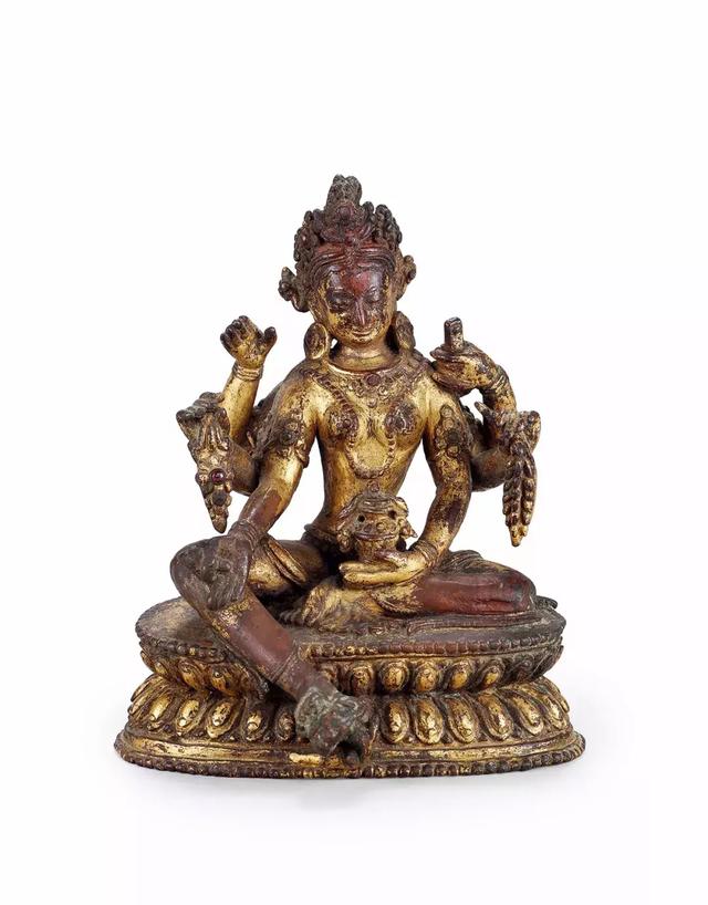 十五世纪 尼泊尔铜鎏金六臂财续佛母