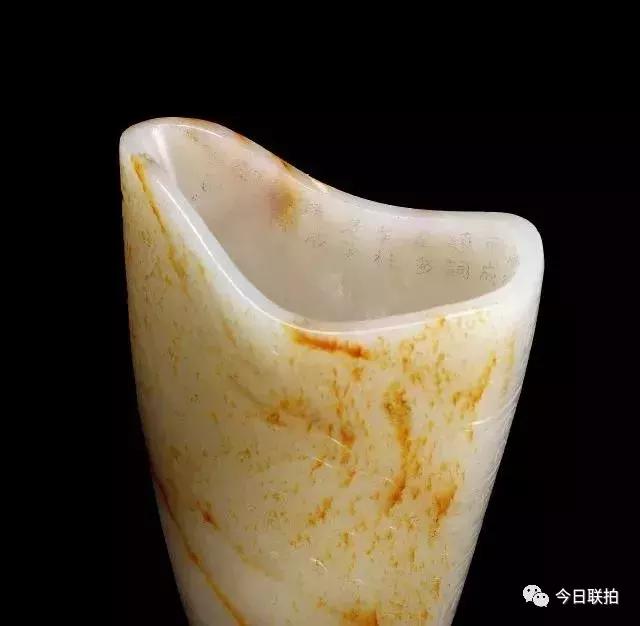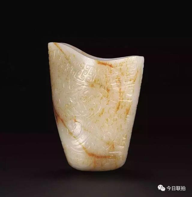 清乾隆 白玉带皮御题诗饕餮纹觥